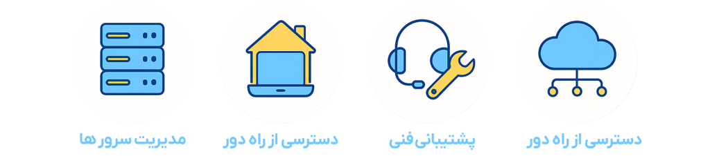• کاهش هزینه‌ها: نیازی به حضور فیزیکی برای مدیریت سیستم‌ها وجود ندارد.