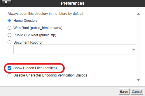 Files that begin with a “.” (known as Dotted Files) are considered hidden files in the file manager. Therefore, it’s important to first enable the display of hidden files through the Settings option and activating the “Show Hidden Files (dotfiles)” setting.