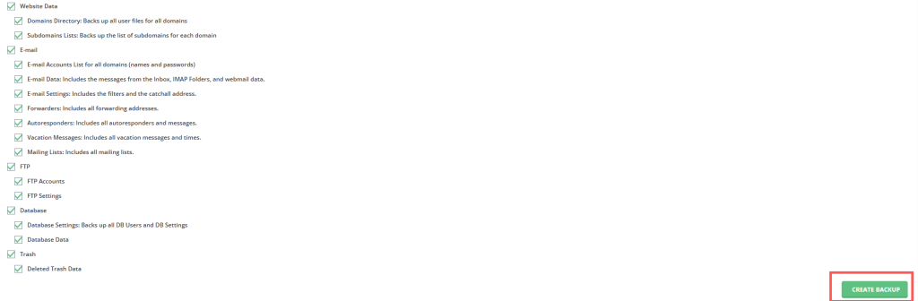 • Select all the available options to include all parts of your hosting account in the full backup file.