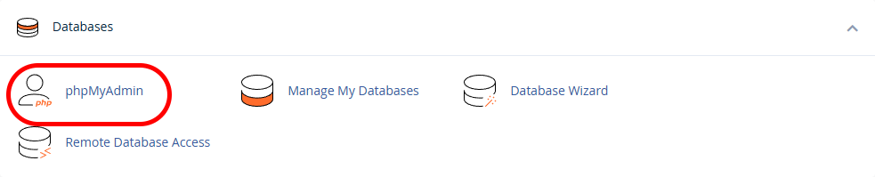 • In the Databases section, enter phpMyAdmin.