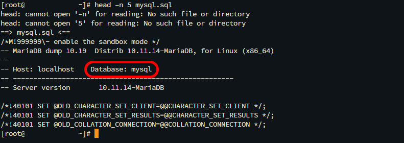 head –n 5 [dump-file].sql