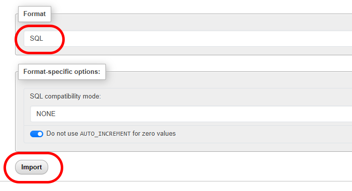 • Set the file import format to SQL.